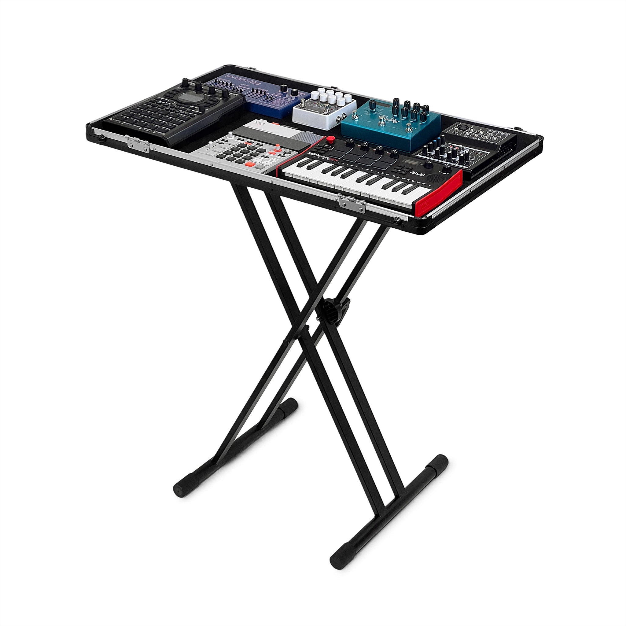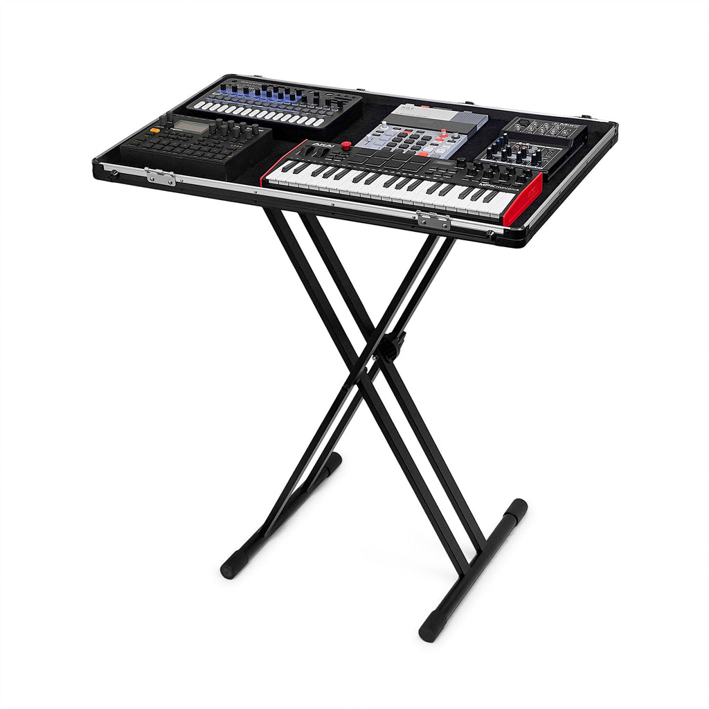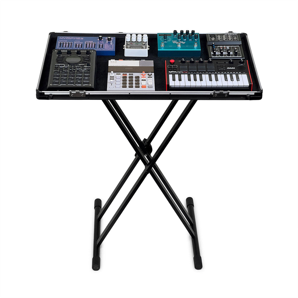 Your gear can be completely wired up inside the case, just like a guitarist’s pedalboard. So when it’s time to perform, just detach the removable lid, place it on a stand or table, and you’re ready to play!
