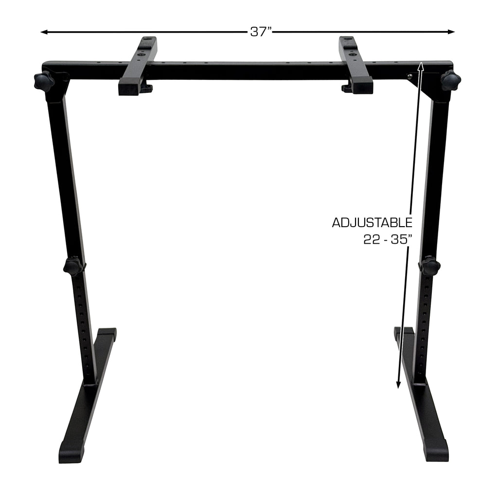 The Performance Stand System offers many options to extend the functionality of your stand: it can transform into a portable DJ table, a 2-tier keyboard stand, or a multi-shelf synth rack holding numerous machines. Unlike traditional keyboard stands, the Performance Stand's modular design lets you switch between single-tier and 2-Tier setups as needed.